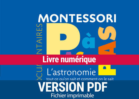 L'essentiel de l'astronomie pour les 6-12 ans, ici dans une version PDF, mais surtout comment les connaissances humaines se sont construites depuis l'Antiquité. L'astronomie est l'un des sujets les plus souvent abordés dans un contexte montessorien. Fidèle aux principes de la collection, cet ouvrage donne le vocabulaire au lieu de le simplifier, mais les explications sont approfondies. Il présente non seulement l'état actuel des connaissances, mais surtout l'histoire de l'astronomie. Maria Montessori insistait sur la nécessité pour l'enfant de connaitre les grands penseurs, les grands découvreurs, les grands savants du passé, pour comprendre leur apport aux connaissances de l'humanité et pouvoir faire naitre des vocations. Il explique les techniques qui permettent les découvertes, parce que les enfants aiment comprendre.