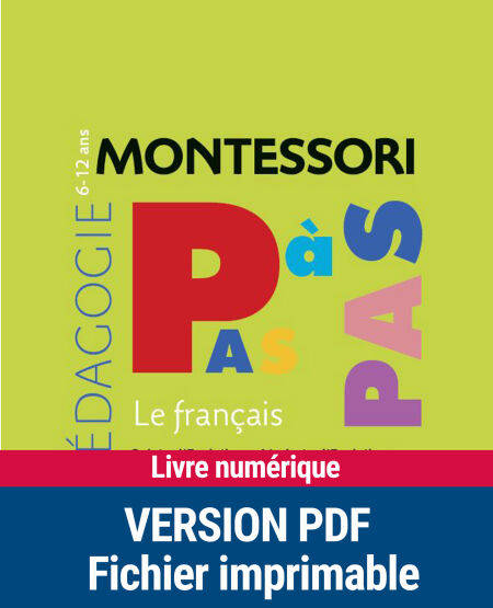 Un tout en un montessorien, ici dans sa version PDF, sur le français et l'expression orale ou écrite, à utiliser à la suite ou indépendamment du 3-6 ans. Ce livre détaille le travail montessorien en grammaire, orthographe et conjugaison, mais aussi en expression écrite et orale. Il couvre l'équivalent du programme de l'Education nationale jusqu'à la cinquième incluse. Il souligne aussi les intentions pédagogiques sous-jacentes et met en évidence l'apport particulier de chaque activité pour aider l'enfant à découvrir des contenus scolaires tout en favorisant le développement de sa personnalité. Cet ouvrage propose aussi de nombreuses pistes pour les enfants de 6 ans qui n'auraient pas bénéficié jusque-là d'un parcours montessorien. Il s'adresse enfin aux enfants qui semblent à l'aise en lecture-écriture, mais qui sont en réalité assez fragiles. Bien souvent, les notions de base n'ont été que mémorisées, ni comprises ni assimilées. Le livre propose des activités pour vérifier où en sont les enfants et, le cas échéant, leur faire revisiter certaines notions.