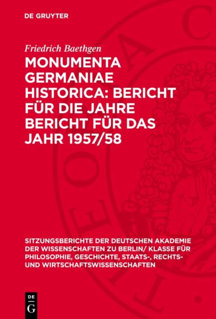 Monumenta Germaniae Historica: Bericht Für Die Jahre Bericht Für Das Jahr 1957/58