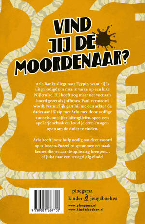 Tijdens het lezen van deze heerlijke puzzeldetective kruip je in de huid van Arlo en maak je zelf de keuzes die je dichter bij de moordenaar brengen. Of juist naar een vroegtijdig einde! Dit verhaal over Egypte is een los te lezen deel in de serie over de jonge detective Arlo Banks. Eerder verscheen Moord op het spoor.