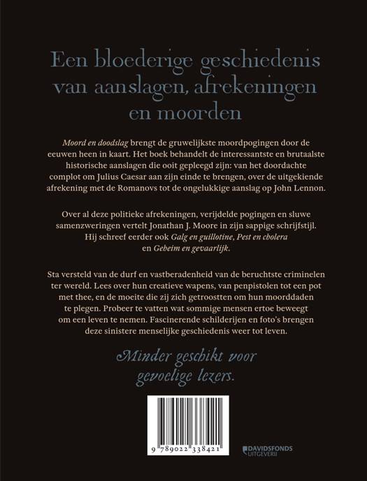 Over al deze politieke afrekeningen, verijdelde pogingen en sluwe samenzweringen vertelt Jonathan J. Moore in zijn sappige schrijfstijl. Hij schreef eerder ook Galg en guillotine, Pest en cholera en Geheim en gevaarlijk.