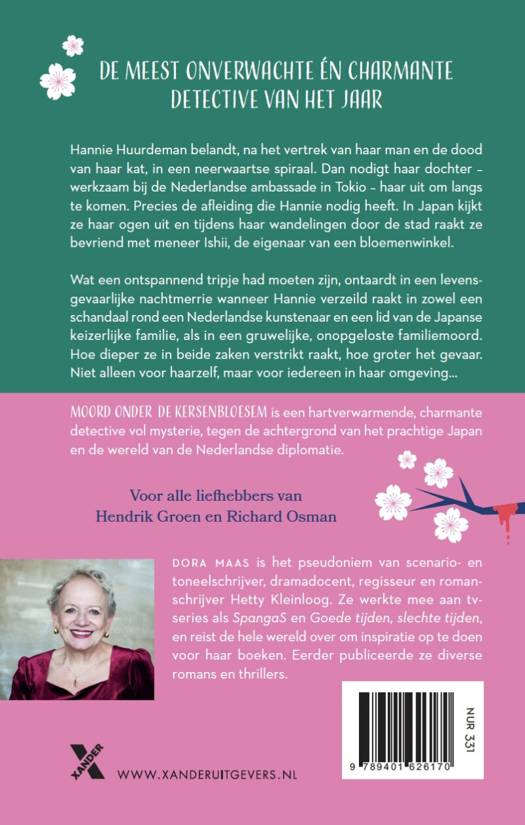 Moord onder de kersenbloesem van Dora Maas is de meest onverwachte detective van het jaar! Een charmante en slimme detective tegen de achtergrond van de wereld van diplomatie. Warm, geestig en vol verrassingen: dit is hét boek voor liefhebbers van Hendrik Groen, Vera Wong en Richard Osman.