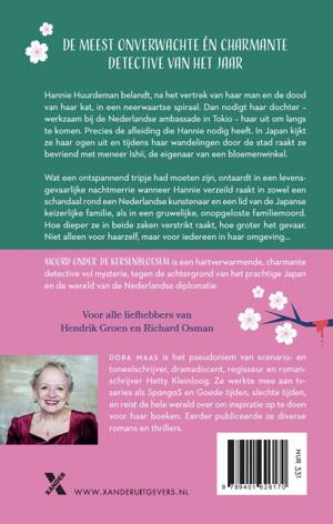 In de charmante detective Moord onder de kersenbloesem belandt Hannie Huurdeman, na het vertrek van haar man en de dood van haar kat, in een neerwaartse spiraal. Dan nodigt haar dochter - werkzaam bij de Nederlandse ambassade in Tokio - haar uit om langs te komen. Precies de afleiding die Hannie nodig heeft. In Japan kijkt ze haar ogen uit en tijdens haar wandelingen door de stad raakt ze bevriend met meneer Ishii, de eigenaar van een bloemenwinkel.Wat een ontspannend tripje had moeten zijn, ontaardt in een levensgevaarlijke nachtmerrie wanneer Hannie verzeild raakt in zowel een schandaal rond een Nederlandse kunstenaar en een lid van de Japanse keizerlijke familie, als in een gruwelijke, onopgeloste familiemoord. Hoe dieper ze in beide zaken verstrikt raakt, hoe groter het gevaar. Niet alleen voor haarzelf, maar voor iedereen in haar omgeving...