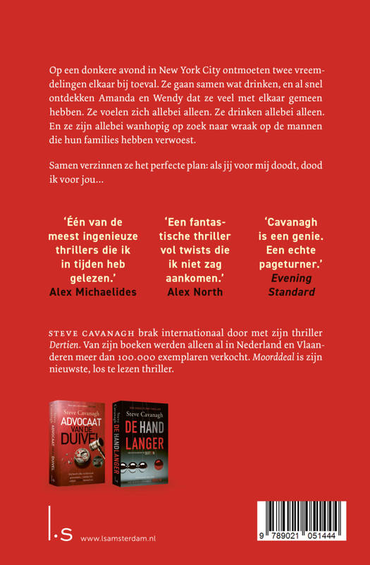 Steve Cavanagh werd wereldwijd beroemd met Dertien, de bloedstollende rechtbankthriller over Eddie Flynn. Moorddeal is zijn tweede losstaande thriller.