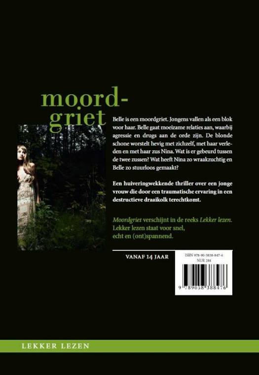 Een huiveringwekkende thriller. Over een jonge vrouw die door een traumatische ervaring zichzelf volkomen kwijtraakt. Vanaf 14 jaar. Belle is een moordgriet. Jongens vallen als een blok voor haar. Belle gaat moeizame relaties aan, waarbij agressie en drugs aan de orde zijn. De blonde schone worstelt hevig met zichzelf, met haar verleden en met haar zus Nina. Tussen de zussen die ooit de dikste vrienden waren, is het tot een breuk gekomen. Het lijkt erop dat een wraakzuchtige Nina het leven van haar zus in gevaar brengt. Belle vindt geen gehoor bij haar ouders, waardoor ze zich steeds meer van de buitenwereld afsluit en in een destructieve draaikolk terechtkomt.