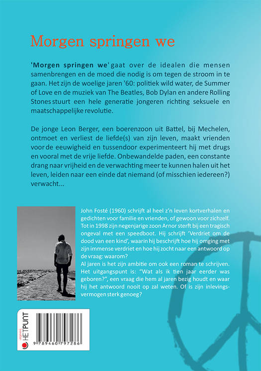 'Morgen springen we' gaat over de idealen die mensen samenbrengen en de moed die nodig is om tegen de stroom in te gaan. Het zijn de woelige jaren '60: politiek wild water, de Summer of Love en de muziek van The Beatles, Bob Dylan en andere Rolling Stones stuurt een hele generatie jongeren richting seksuele en maatschappelijke revolutie.