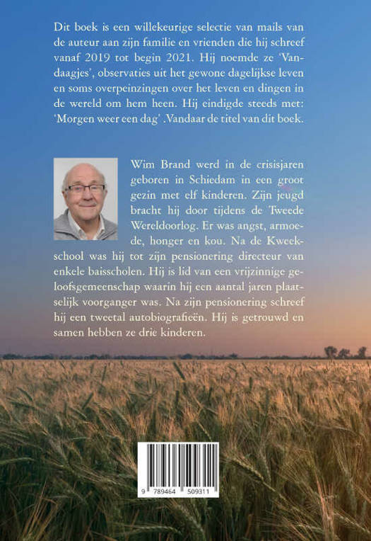 Dit boek is een willekeurige selectie van mails van de auteur aan zijn familie en vrienden die hij schreef vanaf 2019 tot begin 2021. Hij noemde ze 'Vandaagjes', observaties uit het gewone dagelijkse leven en soms overpeinzingen over het leven en dingen in de wereld om hem heen. Hij eindigde steeds met: ‘Morgen weer een dag’ .Vandaar de titel van dit boek.