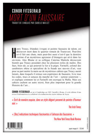 La mort apparemment accidentelle d'un vieil ivrogne d'origine irlandaise amène le commissaire Alec Blume, un Américain qui vit à Rome, à se plonger dans l'univers fascinant des artistes faussaires. Car l'Italie est à la fois le pays des plus grands artistes et celui des combinards les plus inspirés...