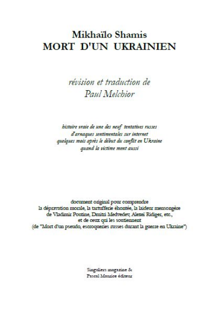 Histoire vraie de une des neuf tentatives russes d'arnaques sentimentales sur internet quelques mois après le début du conflit en Ukraine quand la victime ment aussi... Document original pour comprendre la dépravation morale, la tartufferie éhontée, la laideur mensongère de Putin, Medvedev, Goundiaïev, et de ceux qui les soutiennent (de "Mort d'un pseudo, escroqueries russes durant la guerre en Ukraine").