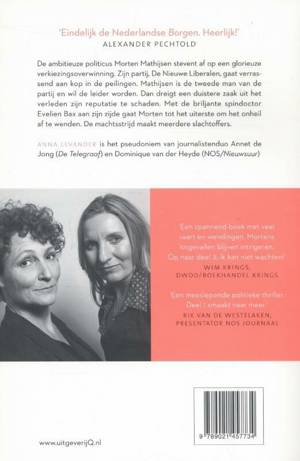 De ambitieuze politicus Morten Mathijsen stevent af op een glorieuze verkiezingsoverwinning. Zijn partij, De Nieuwe Liberalen, gaat verrassend aan kop in de peilingen. Mathijsen is de tweede man van de partij en wil leider worden. Dan dreigt een duistere zaak uit het verleden zijn reputatie te schaden. Met de briljante spindoctor Evelien Bax aan zijn zijde gaat Morten tot het uiterste om het onheil af te wenden. De machtsstrijd maakt meerdere slachtoffers.