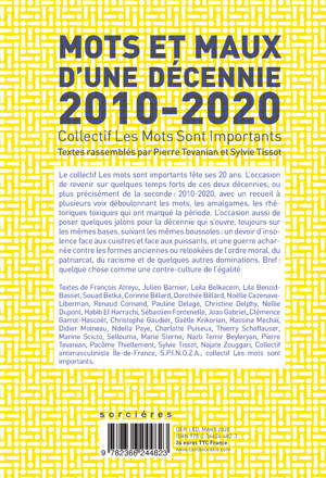 Le collectif "Les mots sont importants", qui lutte contre toutes les formes de discriminations et de discours de pouvoir, fête ses 20 ans. L'occasion d'écrire l'histoire de ce collectif dans ce recueil à plusieurs voix : une trentaine d'auteur.e.s (parmi lesquels Christine Delphy, Pacome Thiellement, Pauline Delage, Ndella Paye, Joao Gabriell, Thierry Schaffauser, Charlotte Puiseux, Hassina Mecha) des formats et des registres variés, du coup de gueule à l'analyse approfondie, en passant par la satire ou la parodie. L'occasion aussi de poser quelques jalons pour la décennie qui s'ouvre, toujours sur les mêmes bases, suivant les mêmes boussoles : un devoir d'insolence face aux cuistres et face aux puissants, et une guerre acharnée contre les formes anciennes ou relookées de l'ordre moral, du