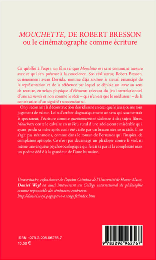 Mouchette conte le calvaire en milieu rural d'une adolescente misérable qui, ayant perdu sa mère après avoir été violée par un braconnier, se suicide. Il ne s'agit pas, comme dans le roman de Bernanos qui l'inspira, de complainte apitoyée. Ce n'est pas davantage un plaidoyer contre le viol, ni même une enquête psychosociologique qui ferait sa part à la complexité mais un poème dédié à la grandeur de l'âme humaine.