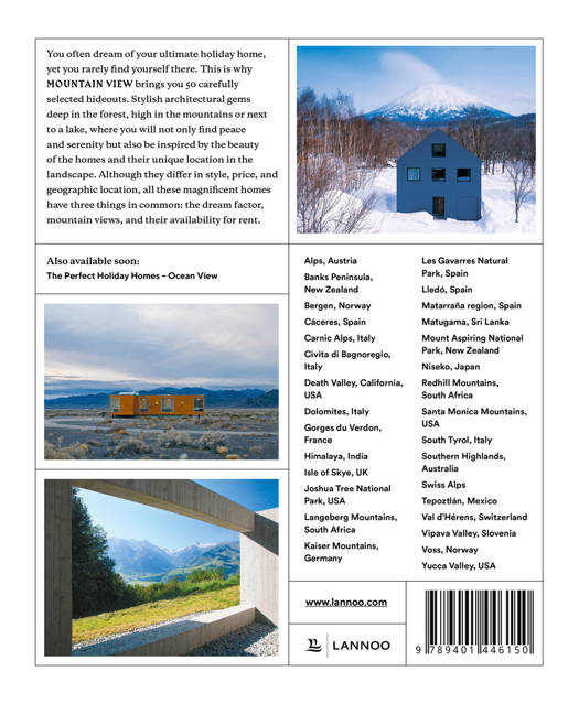 This, the first title in a new series, Nature Retreats, which presents the most beautifully-designed holiday homes, with stunning mountain views. Travel journalist Sebastiaan Bedaux gathered 30 of the most stylish hideouts in the world in Mountain View. Despite the great variety of styles, different price tags and unique geography of the houses, they do have one thing in common: they are the stuff of dreams.