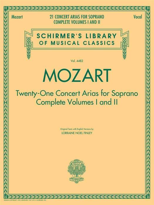 (Vocal). Collected for the first time in one convenient and inexpensive edition. Contents: Voi avete un cor fedele, K. 217 (You've a heart benign and loyal) * Ah, lo previdi!, K. 272 (Ah, my foreboding!) * Alcandro, lo confesso...Non so d'onde viene, K. 294 (Alcandro, I confess it...I know not from wither) * Besta, vincesti...Ah non lasciarmi, no, K. 486a (Silence! you've conquered!...Ah! do not let us part) * Popoli di Tessaglia!, K. 316 (Thessaly's people) * Kommet her, ihr frechen Sunder, K. 146 (Sinners, come!) * Ma che vi fece, o stelle...Sperai vicino il lido, K. 368 (Tell me, ye stars...I trusted my haven was nearer) * Misera, dove son!...Ah! non son io che parlo, K. 369 (Where am I?...Not mine the voice complaining) * A questo seno, deh! vieni...Or che il cielo, K. 374 (O come to me...They who feel not love's devotion) * Nehmt meinen Dank, K. 383 (Thank you, my friends) * Mia speranza adorata!...Ah! non sai qual pena, K. 416 (Dearest Hope, my Beloved!...You know not how my heart is breaking) * Vorrei spiegarvi, oh Dio!, K. 418 (If I, O Heaven, could tell you) * No, no, no, che non sei capace, K. 419 (No, no, no, truly you know nothing) * Non piu. Tutto ascoltai...Non temer, amato bene, K. 490 (No more, I heard it clearly...Do not fear my love may alter) * Chio mi scordi di te?...Non temer, amato bene, K. 505 (I forget you, my dear?... Do not fear my love may alter) * Bella mia fiamma... Resta, oh cara, K. 528 (Heart's beauty flaming...Stay, Love, I perish) * Ah se in ciel, benigne stelle, K. 538 (Friendly stars, if yet in Heaven) * Al desio di chi t'adora, K. 577 (Let my longing and supplication) * Alma grande e nobil core, K. 578 (One whose spirit is true and noble) * Chi sa, chi sa, qual sia, K. 582 (Who knows my swain's affliction?) * Vado, ma dove?, K. 583 (Whither I'm going I Know not)