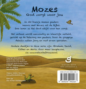 In dit boekje maken peuters kennis met Mozes, uit de Bijbel. Ook leren ze dat God altijd voor hen zorgt.