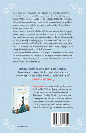 Maar wanneer Mr. Malcolm ook Selina begint te beoordelen aan de hand van zijn onhaalbare eisen, besluit ze dat zij ook zo haar voorwaarden heeft. En als hij daaraan wil voldoen, moet hij eerst eens de echte man onthullen die schuilt achter… Mr. Malcolm’s lijst.