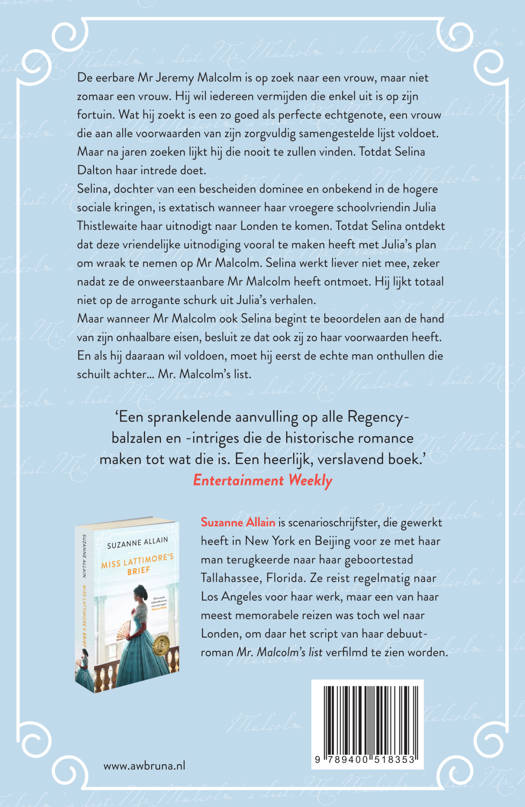 Maar wanneer Mr. Malcolm ook Selina begint te beoordelen aan de hand van zijn onhaalbare eisen, besluit ze dat zij ook zo haar voorwaarden heeft. En als hij daaraan wil voldoen, moet hij eerst eens de echte man onthullen die schuilt achter… Mr. Malcolm’s lijst.