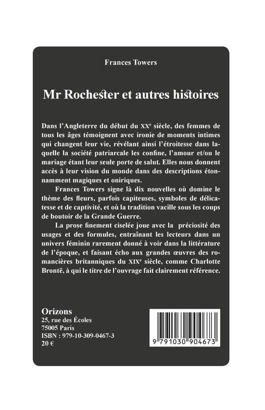 Dans l’Angleterre du début du XXe siècle, des femmes de tous les âges témoignent avec ironie de moments intimes qui changent leur vie, révélant ainsi l’étroitesse dans laquelle la société patriarcale les confine, l’amour et/ou le mariage étant leur seule porte de salut. Elles nous donnent accès à leur vision du monde dans des descriptions étonnamment magiques et oniriques. Frances Towers signe là dix nouvelles où domine le thème des fleurs, parfois capiteuses, symboles de délicatesse et de captivité, et où la tradition vacille sous les coups de boutoir de la Grande Guerre. La prose finement ciselée joue avec la préciosité des usages et des formules, entraînant les lecteurs dans un univers féminin rarement donné à voir dans la littérature de l’époque, et faisant écho aux grandes œuvres des romancières britanniques du XIXe siècle, comme Charlotte Brontë, à qui le titre de l’ouvrage fait clairement référence.