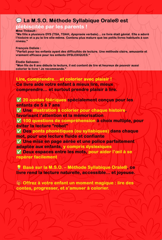 Grâce à la Méthode Syllabique Orale (M.S.O.®), ce livre accompagne en douceur tous les enfants, y compris ceux en difficulté (DYS, TDAH, TSA…).