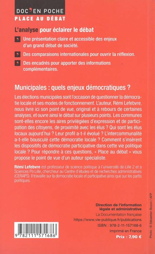 Les élections municipales de mars 2020 sont l’occasion de questionner la démocratie locale et ses modes de fonctionnement. L’auteur, Rémi Lefebvre, nous livre ici son point de vue, original et à rebours de certaines analyses, et ouvre ainsi le débat sur plusieurs points. Les communes sont-elles encore les aires privilégiées d’expression et de participation des citoyens, de proximité avec les élus ? Qui sont les élus locaux aujourd’hui ? Leur profil a-t-il évolué ? L’intercommunalité a-t-elle bousculé cette démocratie locale ? Comment s’insèrent les dispositifs de démocratie participative dans cette vie politique locale ? Si municipalité est souvent associée à proximité, aussi bien dans la prise de décision que de l’accès aux élus, l’auteur démontre que la situation a changé aujourd’hui. Avec l’intercommunalité (réunion de plusieurs communes dans une nouvelle structure), certaines décisions ne sont plus prises dans le cadre de la commune et sous l’égide du maire. Le profil des élus se technicise aussi du fait des tâches de plus en plus complexes qu’ils ont en charge. La vague de démissions des maires en 2018-2019 et la « crise des vocations » supposée laisse percevoir une forme de malaise.