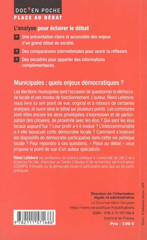 Cet ouvrage analyse la démocratie participative et ses limites : de l’organisation autour du maire, du profil des élus municipaux et de la place des alternatives politiques au niveau local, au rôle de l’intercommunalité.