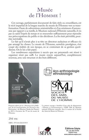 Cet ouvrage est le récit impartial de la longue marche du musée de l'Homme vers sa transformation. Faute de subventions ministérielles et d'un minimum d'autonomie par rapport à sa tutelle, le Muséum national d'histoire naturelle, il n'a pas su saisir l'esprit du temps et se renouveler suffisamment pour répondre aux préoccupations du public et des décideurs. Autrefois prestigieux, le Musée de l'homme s'est coupé des réalités de son époque. Il rouvre aujourd'hui, complètement nouveau, avec une structure et des buts différents.