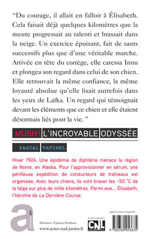 Au cours de l'hiver 1924, une épidémie de diphtérie se déclare à Nome, sur le territoire de l'Alaska. La ville est placée en quarantaine. Le gouverneur de l'État conçoit alors une périlleuse expédition pour l'approvisionner en sérum : au total, trente-cinq mushers (conducteurs de traîneaux), dont la courageuse Élisabeth, vont braver avec leurs chiens les -50 °C pour une traversée de la taïga sur plus de 1 000 kilomètres. Une course contre la montre haletante. Du pur roman d'aventures!