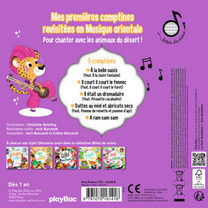 Un livre sonore idéal pour faire découvrir la musique orientale aux tout-petits, dans un univers drôle et joyeux peuplé d'animaux. Ils peuvent appuyer sur la puce tout seuls pour lancer ou arrêter la musique. Et avec un niveau sonore maîtrisé, le livre est parfaitement adapté dès 1 an !
