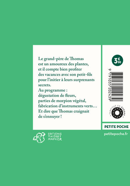 Thomas passe toutes les vacances d'été chez son grand-père, un homme incroyable qui lui transmet son savoir-faire autour des fleurs et de la nature. On l'oublie, mais certaines fleurs se mangent, peuvent se transformer en pions de jeux et même en instruments de musique fabuleux ! Quelle aventure!