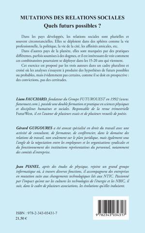 Dans les pays développés, les relations sociales sont plurielles et souvent circonstancielles. Elles se déploient dans des sphères comme la vie professionnelle, la politique, la vie de la cité, les affinités amicales, etc. Dans d'autres pays de la planète, elles sont marquées par des pratiques différentes, parfois soumises à des dogmes. Les auteurs de cet ouvrage s'essayent à produire des hypothèses afin de voir comment pourraient se déployer ces relations sociales dans les 15-20 ans qui viennent.