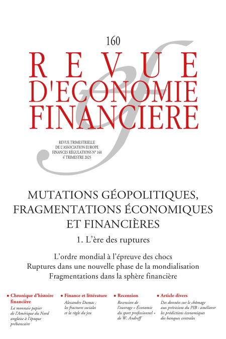 Sous le co-pilotage de Bruno Cabrillac, directeur général de la Fondation pour les études et la recherche sur le développement international (FERDI) et ancien directeur général adjoint de la Banque de France, et de Pierre Jaillet, ancien directeur général (Économie et relations internationales) de la Banque de France et conseiller à l’Institut Jacques Delors - Notre Europe, et chercheur associé à l’IRIS, le numéro 160 de la Revue d’économie financière traite des « Mutations géopolitiques, fragmentations économiques et financières ». Il est publié en français et en anglais.