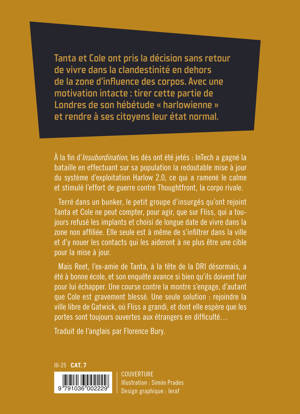 Mais Reet, l'ex-amie de Tanta, à la tête de la DRI désormais, a été à bonne école, et son enquête avance si bien qu'ils doivent fuir pour lui échapper. Une course contre la montre s'engage, d'autant que Cole est gravement blessé. Une seule solution : rejoindre la ville libre de Gatwick, où Fliss a grandi, et dont elle espère que les portes sont toujours ouvertes aux étrangers en difficulté...