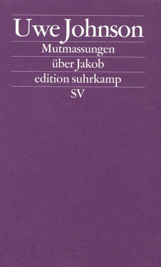 "Im Juni 1959, als die Mutmassungen über Jakob gedruckt wurden, siedelte ihr Autor aus der DDR nach West-Berlin um. Ihm war bewußt, daß dieses Buch, da es inhaltlich und in seiner Ästhetik der offiziellen Ideologie der DDR widersprach, im Osten Deutschlands nicht erscheinen konnte. Es spürt nämlich dem Tod des Eisenbahn-Dispatchers Jakob Abs nach. »Aber Jakob ist immer quer über die Gleise gegangen.« Handelt es sich um Mord, Selbstmord oder um einen Unfall? Jakob Abs war, und