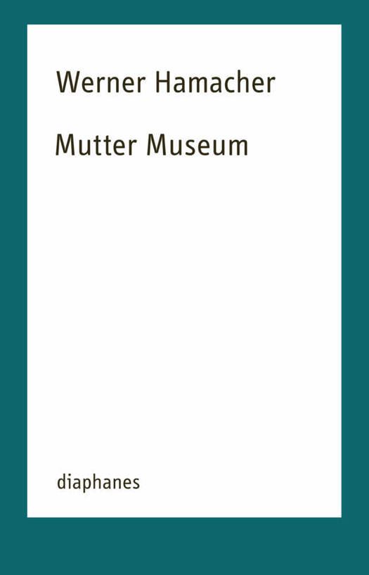 Werner Hamachers Vortrag »Ausstellungen der Mutter. Gang durch verschiedene Museen« gilt als ein Schlüsseltext zum Verständnis des Museums als abendländischer Institution: Es wird lesbar als Ort der materialisierten Trauer über den Verlust einer Referenz, die es nie gegeben hat. Von der deutschen Rezeption nach seinem Erscheinen im Jahr 1995 nahezu unkommentiert, stieß der Text in Frankreich auf ein zustimmendes wie kritisches Echo durch Jacques Derrida und Philippe Lacoue-Labarthe. Hamacher plante daraufhin eine erweiterte Ausgabe, die auf diese Kritik reagiert und weit über sie hinausgeht. Insbesondere seine Auseinandersetzung mit Raffaels »Sixtinische Madonna« und Artauds »La Maladresse sexuelle de dieu« weist den Weg zu einer irrelationalen Markierung, die der Rückhaltlosigkeit von Werk und Museum in ihrem Wechselspiel eine neuartige und Grund legende Kraft verleiht.