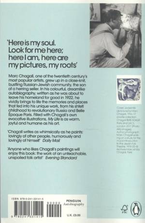 Marc Chagall was born in White Russia and brought up in the Jewish community of Witebsk. He was a prolific artist, producing whimsical, dream-like paintings, stained glass windows, stage sets, ceramics and tapestries. He studied art in St Petersburg and he became Commissar of Arts in Witebsk after the Bolshevik Revolution. In 1923 he settled in Paris and, apart from evacuating to New York during the Second World War, he lived in France until his death in 1985. In the 1950s, Picasso predicted that 'Chagall will be the only painter left who understands what colour really is'.