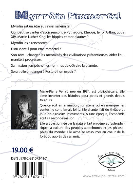 Myrrdin est un être au savoir millénaire. Qui peut se vanter d'avoir rencontré Pythagore, Khéops, le roi Arthur, Louis XIV, Martin Luther King, les hippies et tant d'autres ? Myrrdin les a rencontrés. D'où vient-il pour être immortel ? Son rêve : changer les mentalités des civilisations prétentieuses, aider l'humanité à progresser. Sa mission : empêcher les hommes de détruire la planète. Serait-elle en danger ? Reste-t-il un espoir ?