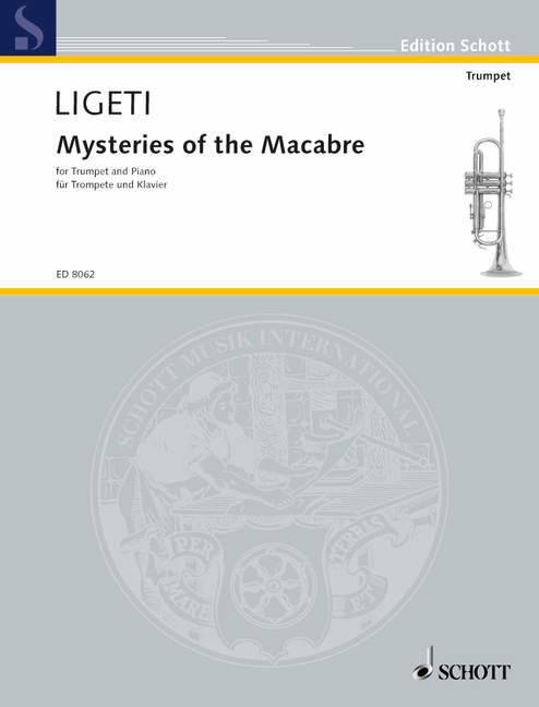 I composed my opera Le Grand Macabre from 1974 to 1997. The Mysteries of the Macabre are arrangements of three coloratura arias of the chief of the “Secret Political Police” which have been arranged (beautifully!) for chamber ensemble by Elgar Howarth. My friend Howarth had conducted the world premiere of the opera in Stockholm in 1978 and some of the further productions. The half-nonsense text is an immediate – however more accurate – continuation of the idea of my works Aventures and Nouvelles Aventures, but there is no chromatics in the music any more. Instrumentation: trumpet in C and piano
