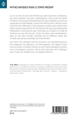 La vie, la mort, le sexe : ces trois thèmes n’ont cessé de hanter l’homme, cet étrange animal pensant. Peu de civilisations anciennes cependant ont développé, comme l’ont fait les Grecs 500 ans avant notre ère, des réflexions et des pratiques sociales aussi voisines des nôtres encore aujourd’hui. Ils ont été plus loin que quiconque dans l’élaboration d’une pensée qui s’interroge sur la place et le rôle de l’homme au sein de l’univers. Certes, les dieux sont omniprésents. Mais ce sont des humains divinisés qui ne différent guère des mortels que par leur privilège de l’immortalité. Les Grecs ont anticipé comme personne nos questionnements, nos angoisses, nos passions, nos interrogations, nos rapports avec la vie, la nature, le temps, l’amour, la mort. Nous divergeons parfois, nous convergeons souvent, mais le plus fascinant est le dialogue qui ne cesse de s’établir avec eux depuis 2500 ans.