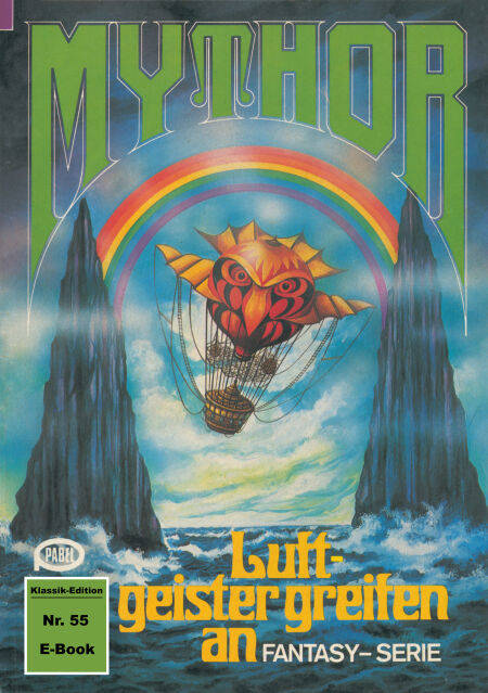 Logghard, siebter Fixpunkt des Lichtboten und Ewige Stadt, hat auch am 250. Jahrestag der Belagerung allem standgehalten, was die Kräfte der Finsternis in einem wahren Massenangriff gegen die Bastion der Lichtwelt ins Feld führten. Somit haben die Streiter des Lichtes auf Gorgan, der nördlichen Hälfte der Welt, trotz des Debakels von Dhuannin und anderer Niederlagen gegen die vordringenden Heere der Caer eine gute Chance, sich auch weiterhin zu behaupten. Mythor, der Sohn des Kometen, hat in der relativ kurzen Zeit, da er für die Sache der Lichtwelt kämpfte, bereits Großes vollbracht. Nun aber hat der junge Held nach seinem Vorstoß in die Schattenzone Gorgan, die nördliche Hälfte der Welt, durch das Tor zum Anderswo verlassen. Zahda, die Zaubermutter, nimmt sich des Bewusstlosen an, der durch das unheimliche Tor in den Ozean der Dämmerzone gespült wurde, die bereits zu Vanga gehört, der vom weiblichen Geschlecht beherrschten Südhälfte der Welt. Doch kaum hat Zahda den Gorganer aus ihrer Obhut entlassen, muss dieser bereits wieder um sein Leben kämpfen. Das gilt auch für Mythors neue Gefährten - denn die LUFTGEISTER GREIFEN AN ...