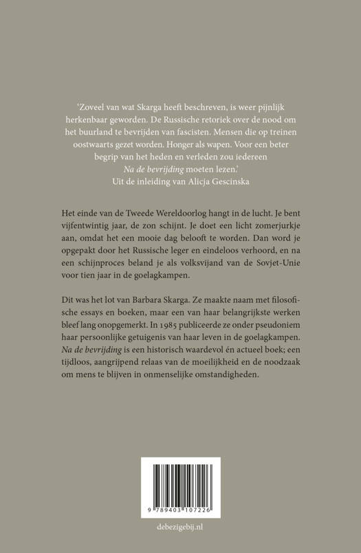 Dit was het lot van Barbara Skarga. Ze maakte naam met filosofische essays en boeken, maar een van haar belangrijkste werken bleef lang onopgemerkt. In 1985 publiceerde ze onder pseudoniem haar persoonlijke getuigenis van haar leven in de goelagkampen. Na de bevrijding is een urgent boek, nu een beter begrip van de complexe realiteit en verhouding van Rusland met zijn buurlanden meer dan ooit noodzakelijk is.