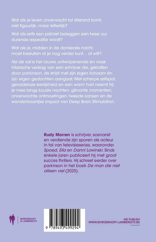 Na de val is het rauwe, ontwapenende en vaak hilarische verslag van een schrijver die, getroffen door Parkinson, de strijd met zijn eigen lichaam én zijn eigen gedachten aangaat. Met scherpe zelfspot, genadeloze eerlijkheid en een ontwapenend warm hart neemt hij je mee langs koude nachten, gênante momenten, onverwachte ontmoetingen, tweede kansen en de wonderbaarlijke impact van Deep Brain Stimulation.
