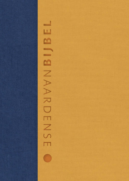 De Naardense Bijbel 2024, nu op een handig en goed leesbaar formaat (16 bij 22 cm, het zogenaamde huisbijbelformaat). Deze okergekleurde uitvoering heeft een harde linnen band, met een donkerblauwe rug. Er zijn acht andere uitvoeringen, sommige daarvan ook met de deuterocanonieke (DC) bijbelboeken.