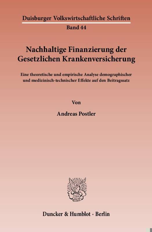 Bevölkerungsalterung und medizinisch-technischer Fortschritt bilden den Mittelpunkt einer kontroversen Diskussion um eine nachhaltige Finanzierung der Gesetzlichen Krankenversicherung (GKV). Andreas Postler greift diese Diskussion auf und untersucht unter anderem folgende Fragen: Welche Beitragssteigerungen sind zu erwarten? Kann der Übergang zum Kapitaldeckungsverfahren einen Beitrag zur Nachhaltigkeit leisten?