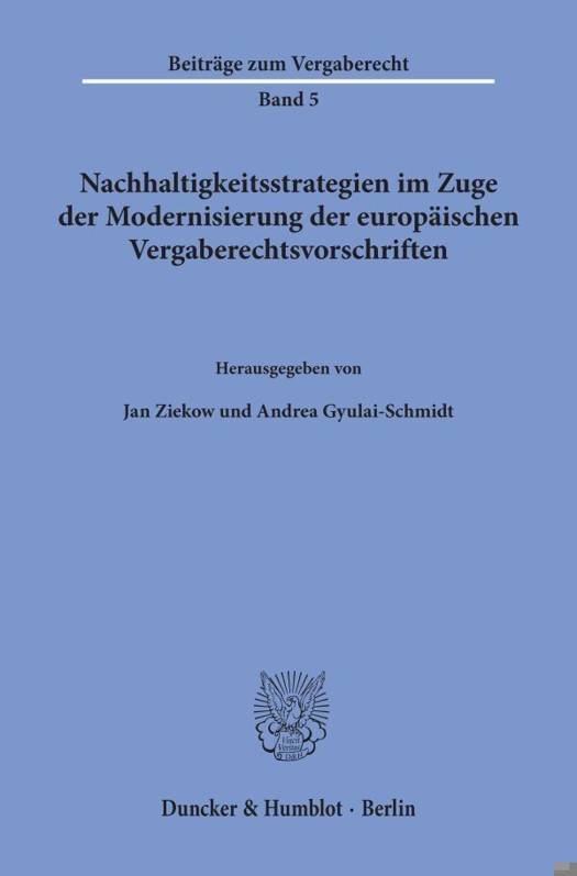 Der vorliegende Tagungsband enthalt eine aktuelle Bestandsaufnahme der Vorteile und Herausforderungen der nachhaltigen Beschaffung infolge der praktischen Umsetzung der europaischen Vergaberichtlinien 2014. Er ist das Ergebnis einer internationalen Konferenz im Jahr 2017 in Speyer, zu der sich Experten aus Wissenschaft und Praxis aus Deutschland, Ungarn, Osterreich und der Schweiz trafen, um zentrale Fragen zur effektiven Anwendung von okologischen, sozialen und innovativen Aspekten im Vergaberecht zu erortern. Das Thema ist aktuell und zukunftsorientiert. Die nachhaltige Entwicklung, worunter die Befriedigung der Bedurfnisse der Gegenwart verstanden wird, ohne die Zukunftschancen nachfolgender Generationen zu riskieren, hat viele mit der offentlichen Beschaffung verbundene Facetten, die die rasche Umsetzung des nachhaltigen Zukunftsmodells im Vergaberecht fordern. Ziel dieses Bandes ist es, die Aufmerksamkeit fur die weitere Entwicklung zu scharfen und neue Losungsansatze aufzuzeigen.