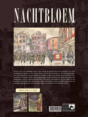 Een duister, elegant tweeluik, Nachtbloem gaat over een van de donkerste periodes in de geschiedenis door de roze bril van verboden liefde. Een menselijke tragedie over de tegengestelde kanten van de ziel: verraad & trouw, vreemdelingenhaat & idealisme, zuiverheid & gemeenheid, jaloezie & zelfverloochening...