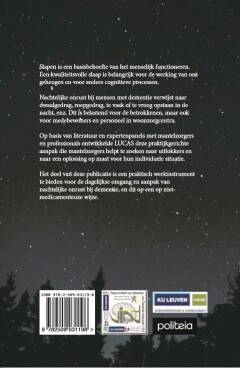 Mantelzorgers, hulpverleners binnen de thuis- of gezinszorg en hulpverstrekkers in woonzorgcentra worden regelmatig geconfronteerd met nachtelijke onrust bij mensen met dementie. Het is een belangrijk probleem dat niet alleen gepaard gaat met veel ongemak voor de persoon zelf, maar ook de mantelzorgers en professionele zorgverstrekkers worden er zwaar door belast. Niet zelden is nachtelijke onrust en de overbelasting van mantelzorgers een reden voor de overgang van thuis- naar woonzorg. Deze publicatie, opgesteld door het LUCAS-team in samenwerking met de Alzheimer Liga Vlaanderen, wil de mantelzorgers en hulpverleners ondersteunen en helpen. Op basis van wetenschappelijke kennis helpen de auteurs bij het kijken naar en begrijpen van nachtelijke onrust en slaapproblemen bij dementie. Bovendien informeert deze publicatie ook over mogelijke niet-medicamenteuze oplossingen en tips. De basisboodschap is om als zorgverlener samen met de zorgverstrekkers en de behandelende arts aan de slag te gaan met een stappenplan: de persoon observeren, uitlokkers inventariseren, een aanpak afspreken, uitproberen en bijsturen, dat is de kern van het verhaal. Daarnaast is het als zorgverlener ook nodig om de eigen draagkracht en grenzen te bewaken.