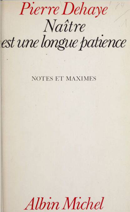 Comment est-il possible de ne publier son premier livre qu’aux approches de la soixantaine alors qu’on a dans le sang le besoin et le goût d’écrire ? C’est une des questions que soulève - et qu’éclaire par instants - le recueil de maximes, d’aphorismes et de notules livrés aujourd’hui au public par Pierre Dehaye sous le titre : Naître est une longue patience. Mais la naissance dont il s’agit est moins celle d’un écrivain que de tout homme. À la fois réflexions et confessions sur l’essentiel d’une expérience existentielle, ce livre, en dépit de sa forme ramassée et fragmentée, est une somme cohérente sur l’étrange cheminement de chacun de nous vers l’âge adulte à travers la pensée, l’action, l’amour, les dons du quotidien, la confrontation multiforme, douce-amère, avec le Mystère.