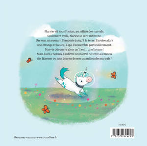 Narvie vit sous l’océan au milieu des narvals. Seulement voilà, Narvie est différent. Sa défense est plus petite, il n’est pas bon nageur, et la nourriture marine n’est pas vraiment à son goût. Lorsqu’un jour, Narvie est emporté par un courant jusqu’à la surface, il décide d’explorer les environs pour finalement découvrir qu’il est… une licorne ! Soulagé, Narvie comprend enfin qui il est vraiment, sans pour autant oublier ses amis de l’océan. Cet album à la fois drôle et attendrissant montre à l’enfant qu’il est normal de se sentir parfois différent.