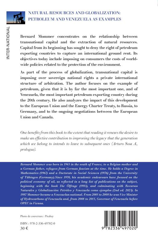 Bernard Mommer concentrates on the relationship between transnational capital and the extraction of natural resources. Capital from its beginning has sought to deny the right of petroleum exporting countries to capture an international ground rent. Its objectives today include imposing on consumers the costs of world-wide policies related to the protection of the environment.