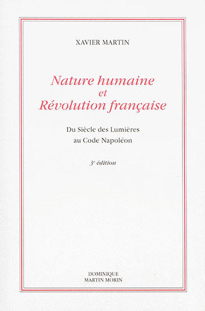 Quelle conception de l'homme les révolutionnaires avaient-ils à l'esprit lorsqu'ils légiféraient pour sa félicité ? Cette interrogation, qui pourrait être primordiale aux yeux de qui se fait devoir de méditer sur leurs « droits de l'homme », est curieusement très peu soulevée. Elle ouvre pourtant, à travers les Lumières et la Révolution, une large voie, qui met au jour un paysage insoupçonné : pour l'essentiel, une conception très réductrice et toute passive de l'être humain, objet prédestiné de manipulation, de « régénération », de bonheur imposé. C'est l'objet de ce livre ! Xavier MARTIN : historien des idées politiques, est professeur émérite des Universités. Ses travaux sur l'anthropologie révolutionnaire ont réputation d'avoir modifié l'approche historique de la vision de l'homme au siècle des Lumières. Bien que peu soucieux des modes, cet historien est désormais un auteur reconnu. Ses « angles d'attaque » sont inattendus, sa manière résolument pluridisciplinaire (droit, politique, littérature, histoire des sciences, de la médecine, philosophie...). De cette recherche ont procédé dix livres, et de nombreux articles (revues scientifiques, Actes de colloques), dont certains ont été traduits en italien, en anglais, en japonais, en russe, en espagnol. Xavier Martin a donné aussi de nombreuses conférences, jusqu'au Japon et en Argentine. Il a pris part à une trentaine d'émissions de radio (Radio-Courtoisie, Radio Notre-Dame, France-Culture).